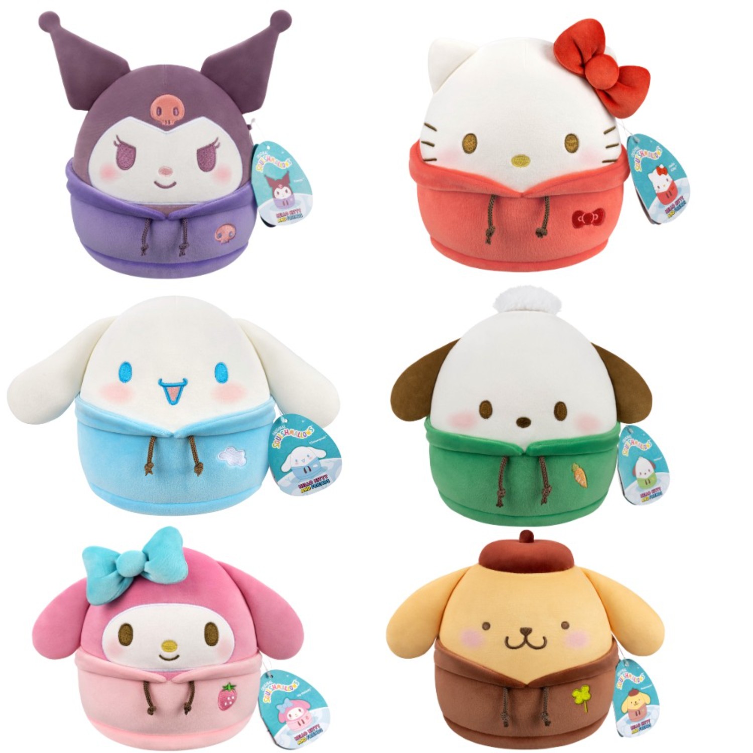 - Celebrate the whimsy of Sanrio with these 8-Inch Dabodabo Hoodie Squishmallows plush! Sanrio Squishmallows are made with ultrasoft, high-quality materials and make the perfect cuddly companion for long flights, comfy nights - even "Hello Kitty and Friends" marathons! Add either Hello Kitty, My Melody, Kuromi, Cinnamoroll, Pompompurin or Pochacco to your Squad. Only by Original Squishmallows. Join the Squad! There are several styles available within this assortment and unfortunately, it is not possible to request which one you would prefer.