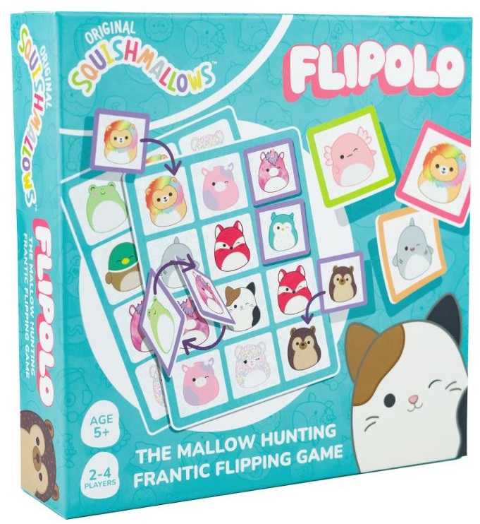 Flipolo is the fast-paced action matching game that requires both speed and keen observation. Players race to the finish to match up all the character tiles to their gameboard. Sounds simple? You'll be surprised! All character tiles are double-sided! You must flip and switch then switch and flip until all tiles are in place. And each time you play, the challenge is different with double-sided gameboards.  For 2-4 players.  Age: 5+ years.FRANTIC FAST FUN: Flipolo is the fast-paced Squishmallows matching game that requires both speed and keen observation!MANIC MATCHING: Can you be the first player to match up the tiles to your gameboard? The first player to complete their matches wins!THE RACE IS ON: Be the first player to complete your gameboard, by flipping and switching, then switching and flipping your Squishmallows tiles. WELCOME TO THE WORLD OF SQUISHMALLOWS: The perfect  gift idea for Squishmallows and  games fans!YOUR FAVOURITE SQUISHMALLOWS: Features cherished characters from the world of Squishmallows.