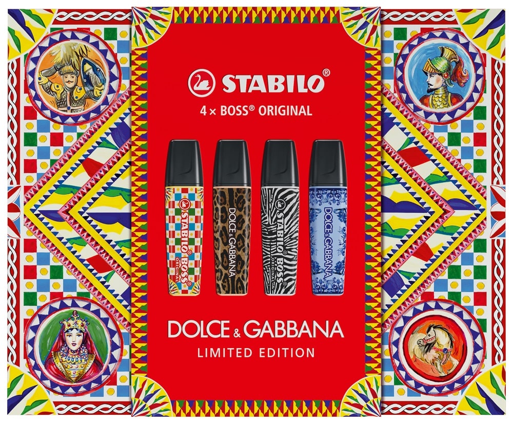 The STABILO BOSS ORIGINAL x DOLCE & GABBANA Limited Edition includes four popular colours, each printed with its own iconic DOLCE & GABBANA pattern.