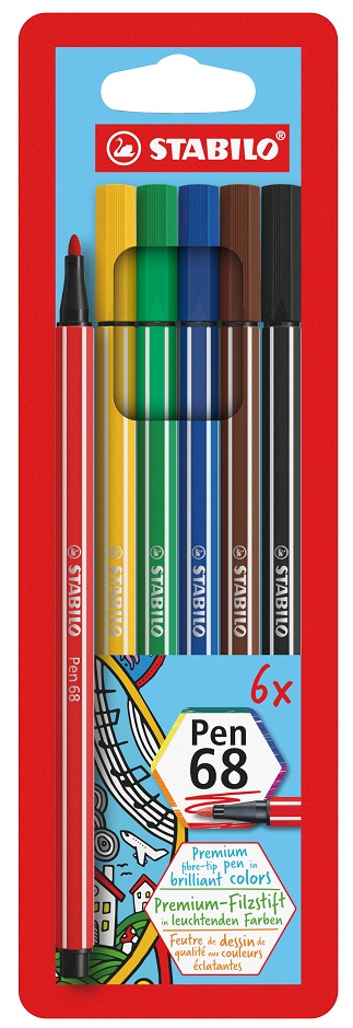 Stabilo Pen 68 Wallet Of 6 Assorted Colours