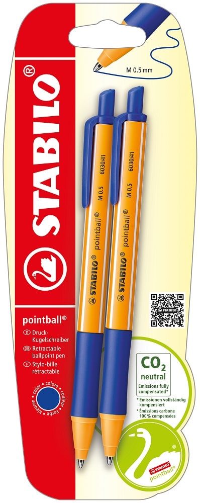 STABILO pointball is a high quality ballpoint pen with a soft gripzone for comfortable, smooth and controlled writing. It has a retractable nib and pocket clip and stands out from the croud, with its iconic orange and white striped design. With outstanding environmental credentials, STABILO pointball is proudly certified as a CO2 neutrally manufactured product and is refillable with STABILO ballpoint refills.