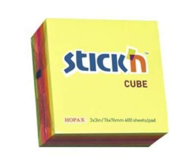 Stick'N 76x76mm neon mixed self adhesive note cube.