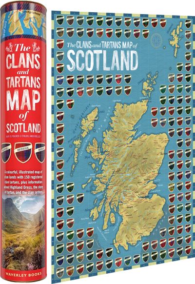 - A brand new clan map of Scotland with over 150 clans from Waverley Books. And on the back, illustrated in colour: Sir Walter Scott's role in the tartan revival; clan badges, crests, and mottoes; how to wear a belted plaid or "the great kilt"; what a clan really is and how the clan system worked; the origins of tartan; the natural vegetable and plant dyes used in tartan pre-1800; the purpose of 'universal tartans'; what women's traditional dress looked like - the arisaid; associated clans of nearly 200 family names, or septs, plus the jargon of tartan - a glossary showing 'weathered', 'reproduction', 'ancient', 'modern', 'dress', 'hunting' and much more. A colourful, illustrated map of clan lands with 150 registered clan tartans, plus information about Highland Dress, the story of tartan, and the clan system.