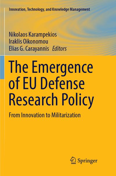 - Nikolaos Karampekios obtained his PhD in EU technology policy jointly from the University of Athens and the National Technical University of Athens. Currently, he is conducting postdoctoral research on the innovation potential of the Swiss security industry at the Centre for Security Economics and Technology (C SET), University of St. Gallen, funded by a Swiss confederation scholarship. His research interests include security research and industrial policy, innovation policy, and the relationship between defence and security. His work has appeared in (indicatively) Géopolitiques et Géostratégies Régionales, Military Power Review, Southeast European and Black Sea Studies, Allgemeine Schweizerische Militärzeitschrift, and Foreign Affairs (Greek edition). In 2015, he co-edited a book on the European Defence Agency (Roultedge Press). Since 2014, he is employed as a researcher-analyst at the Greek National Documentation Center engaged in (co)-authoring the bi-annualreport of the national research, technology and innovation level, performing bibliometric analyses as well as other R&D-metrics (business demographics, tax incentives, etc.). Iraklis Oikonomou holds a PhD in International Politics from the University of Wales Aberystwyth and has conducted post-doctoral research at Ghent University and Sussex University, funded by the Riksbankens Jubileumsfond. His main research interests are European integration theory, the political economy of EU armaments policy, and EU space policy militarisation. His work has appeared in, among others, Wissenschaft & Frieden, Space Policy, Rethinking Marxism, Monthly Review, Studia Diplomatica, Agora without Frontiers, The Bologna Center Journal of International Affairs, and Intelligence and National Security. He is co-editor (with N. Karampekios) of the volume Arming Europe? The European Defence Agency (Routledge, 2015) and (with H. Golemis) of the volume Poulantzas Today (Nissos, 2012; in Greek). He has also guest-edited three special issues of the Greek journal Utopia and contributed chapters to the following titles: European Space Policy: European integration and the final frontier (Routledge, 2016); Militarism and International Relations: Political Economy, Security, Theory (Routledge, 2012); and Explaining European Security and Defence Policy: Theory in Action (Macmillan, 2012).Dr. Elias G. Carayannis is Full Professor of Science, Technology, Innovation and Entrepreneurship, as well as co-Founder and co-Director of the Global and Entrepreneurial Finance Research Institute (GEFRI) and Director of Research on Science, Technology, Innovation and Entrepreneurship, European Union Research Center, (EURC) at the School of Business of the George Washington University in Washington, DC. Dr. Carayannis' teaching and research activities focus on the areas of strategic Government-University-Industry R&D partnerships, technology road-mapping, technology transfer and commercialization, international science and technology policy, technological entrepreneurship and regional economic development.Dr. Carayannis has several publications in both academic and practitioner journals, including IEEE Transactions in Engineering Management, Research Policy, Journal of R&D Management, Journal of Engineering and Technology Management, International Journal of Technology Management, Technovation, Journal of Technology Transfer, Engineering Management Journal, Journal of Growth and Change, Review of Regional Studies, International Journal of Global Energy Issues, International Journal of Environment and Pollution, Le Progres Technique, and Focus on Change Management. He has also published more than twenty books to date on science, technology, innovation and entrepreneurship with Springer, CRC Press, Praeger/Greenwood, Palgrave/MacMillan and Edward Elgar, and has several more projects under contract.