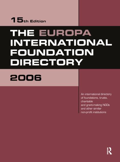 - Now in its fifteenth edition, the Europa International Foundation Directory 2006 provides an un-paralleled guide to the foundations, trusts, charitable and grant-making NGOs, and other similar not-for-profit organizations of the world. It provides a comprehensive picture of third sector activity on a global scale.Presenting names and contact details for over 2,500 institutions world-wide, this new edition has been revised and expanded to include the most comprehensive and up-to-date information on this growing sector.Part OneEssays provide valuable background information on the sector, giving an introductory overview of foundation activity world-wide, as well as detailing the direction in which foundations and NGOs are moving in the 21st century. Essays include:*Foundations, the Third Sector and Non-Governmental Organizations in International Perspective - An Overview by Helmut Anheier, Professor of Social Welfare and Center Director, UCLA Center for Civil Society, UCLA*Foundations and Global Change by Catherina Pharoah, Director of Research, Charities Aid Foundation *A Journey Without Borders - Researching and Applying to Foundations by Karina Holly, editor of Philanthropy in Europe magazine.Part TwoEntries are arranged alphabetically, and are listed within individual country chapters. Over 2,500 entries are listed, providing the following details:*directory information, including the name of the organization, postal address, email and internet addresses as well as telephone and fax numbers*full details of the date of establishment and the aims and function of the organization, where appropriate, as well as its principal activities: projects and programmes, etc. Restrictions on grants are listed along with the geographical area of activity, finances, key executives and trustees of the organization*foundation centres and coordinating bodies are listed in a separate section at the start of each chapter. These include CAF (Charities Aid Foundation, UK), Civil Society International (USA) and the Association Internationale des Charités (Belgium).Entries listed include:Polish-Czech-Slovak Solidarity Foundation, The Bill and Melinda Gates Foundation, Rowan Charitable Trust, Marie Curie Cancer Cure and Médecins sans Frontières.Part ThreeIndexes are provided, listing foundations alphabetically, by geographical region of concern (e.g. the Middle East, Western Europe, Central and South America and the Caribbean, etc.) and by main areas of activity.