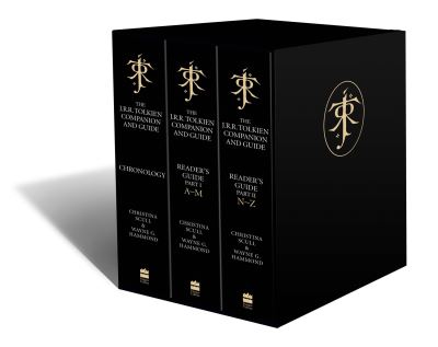- Stunning three-volume slipcased set containing the most comprehensive in-depth companion to Tolkien's life and works ever published, including synopses of all his writings, and a Tolkien gazetteer, who's who and chronology.The three volumes contained in this slipcase, written by two of the foremost experts on J.R.R. Tolkien, comprise the definitive handbook to one of the most popular authors of the 20th century. Tolkien's progress is traced from his birth in South Africa in 1892, to the battlefields of France and the lecture-halls of Leeds and Oxford, to his success as the author of The Hobbit and The Lord of the Rings, until his death in 1973. His many academic and literary achievements, his public reception, and his enduring fame are examined in detail.The first volume in this set is a Chronology of Tolkien's life and works, the most extensive biographical resource about him ever published. Thousands of details have been drawn from letters, contemporary documents in libraries and archives, and a wide variety of other published and unpublished sources. Assembled together, they form a portrait of Tolkien in all his aspects: the distinguished scholar of Old and Middle English, the capable teacher and administrator, the devoted husband and father, the brilliant creator of Middle-earth.The second and third volumes, the Reader's Guide, is an indispensable introduction to Tolkien's life, writings, and art. It includes histories and discussions of his works; analyses of the components of his vast 'Silmarillion' mythology; brief biographies of persons important in his life; accounts of places he knew; essays on topics such as Tolkien's interests and attitudes towards contemporary issues, ideas found in his works, adaptations, and invented languages; and checklists of his published works, his poetry, his pictorial art, and translations of his writing.