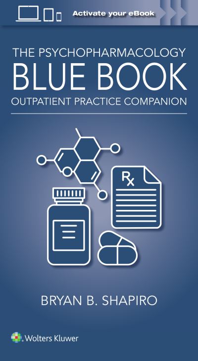 - Intended for fast-paced, high-volume settings, The Psychopharmacology Blue Book: Outpatient Practice Companion tells the complete "story" of a psychiatric drug distilled down to a single page-including pharmacologic properties, acute and chronic side effects, critical warnings, monitoring guidance, drug-drug interactions, titration and tapering schedules, and contingency plans for treatment resistance. A first-of-its-kind resource that strikes an ideal balance between theory and practice, The Psychopharmacology Blue Book provides succinct, actionable guidance for more than 100 psychotropic drugs spanning psychiatry, addiction medicine, and neurocognitive disorders, with additional emphasis on special clinical situations that influence pharmacotherapy. Whether you're a primary care clinician, psychiatric advanced practice provider or psychiatrist, The Psychopharmacology Blue Book is your trusted companion for outpatient psychiatric practice. Innovative one-drug-per-page format for fast-paced clinical care Includes high-level comparisons of the advantages and disadvantages of each individual drug compared to others indicated for the same condition or in the same class Offers reliable, actionable guidance for special situations like pregnancy, dementia, drug-drug interactions, managing comorbidities, and more, all summarized in high-yield, quick-scan reference tables Pocket-sized and spiral-bound for portability and ease of use Ideal for primary care providers and pediatricians, psychiatric advanced practice providers, psychiatry residents and psychiatrists in outpatient practice