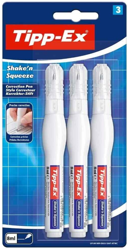 Tipp-Ex Shake'n Squeeze Correction Pens (8 ml) with Quick-Dry Fluid and Precision Metal Tip