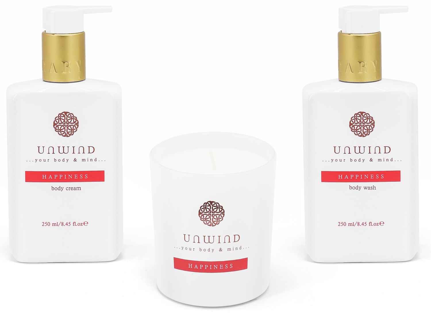 Tipperary Crystal Unwind-Happiness - Set of 3 (Bodywash/ Bodycream/ Candle)