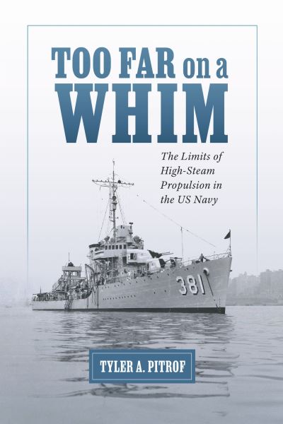 - In Too Far on a Whim, Tyler A. Pitrof presents a high-spirited revision of the US Navy's commitment to high-steam propulsion systems, the mainstay of its World War II fleets. Pitrof's research persuasively demonstrates that in its war against the Imperial Japanese Navy, the US Navy succeeded despite its high-steam propulsion systems rather than because of them. War with an aggressive Japan and a resurgent Germany loomed in the dark days of the late 1930s. Rear Admiral Harold G. Bowen Sr., head of the US Navy's Bureau of Engineering, advanced a radical vision: a new fleet based on high-steam propulsion, a novel technology that promised high speeds with smaller engines and better fuel efficiency. High-steam engines had drawbacks—smaller operational ranges and maintenance issues. Nevertheless, trusting its engineers to resolve these issues, the US Navy put high-steam propulsion at the heart of its warship design from 1938 to 1945. The official record of high-steam technology's subsequent performance has relied heavily on Bowen's own memoir, in which he painted high-steam innovation in heroic colors. Pitrof's empirical review of primary sources such as ship's maintenance records, however, illuminates the opposite—that the heroism lay in the ability of American seamen to improvise solutions to keep these difficult engines running. Pitrof artfully explains engineering concepts in layman's terms and provides an account that extends far beyond technology and into matters of naval hierarchies and bureaucracy, strategic theory, and ego. He offers a cautionary tale—as relevant to any endeavor as it is to military undertakings—about how failures arise when technical experts lack managers who understand their work. Admiral Bowen wielded excessive power because no one else in the US Navy knew enough to countermand him. Compulsively readable, To Far on a Whim is a landmark for those interested in naval history and technology but also for readers interested in the interplay between innovation, decision-making, and engineering.