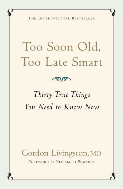 - Dr Gordon Livingston has been a psychiatrist since the 1960s, and has heard from his patients the whole spectrum of those things in life that work and that don't work - and the limitless ways in which we are capable of inflicting unhappiness on ourselves. Out of this lifetime of experience he has extracted thirty bedrock truths, amongst them 'We are what we do', 'Only bad things happen quickly', 'We are afraid of the wrong things' and 'Be bold, and mighty forces will come to your aid'. Gordon believes that we all have a wonderful capacity to face loss, misfortune and regret, and that it is never too late to move beyond them and find greater happiness. This profound and incisive book of collected wisdoms and deceptively simple truths will encourage and inspire you to seek and recognise the best in your life - to realise that it is never too late to find your greatest happiness, and how to go about it.