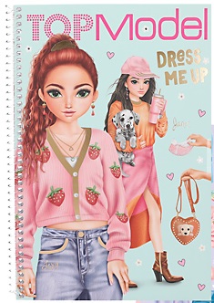 The spiral-bound sticker book TOPModel Dress me up is all about cool looks: 7 sticker sheets (5x paper stickers, 2x foil stickers) with trendy clothes and accessories for styling 20 model figures and their furry friends.
