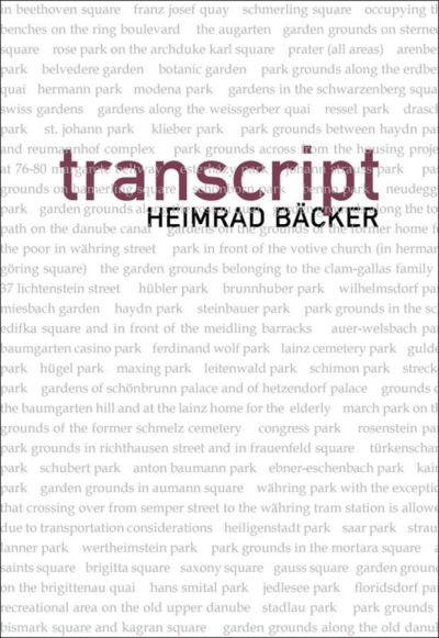 - "transcript" is a disturbing document. Using the techniques of concrete and visual poetry, Heimrad B?cker presents quotations from the Holocaust's planners, perpetrators, and victims. The book offers a startling collection of documents that confront us with details from the bureaucratic world of the Nazis and the intimate worlds they destroyed. B?cker's sources range from victims' letters and medical charts to train schedules and the telephone records of Auschwitz. His transcriptions and reworkings of these sources serve as a reminder that everything about the Shoah was spoken about in great detail, from the most banal to the most monstrous. "transcript" shows us that the Holocaust was not "unspeakable," but was an eminently describable and described act spoken about by thousands of people concerned with the precision and even the beauty of their language.