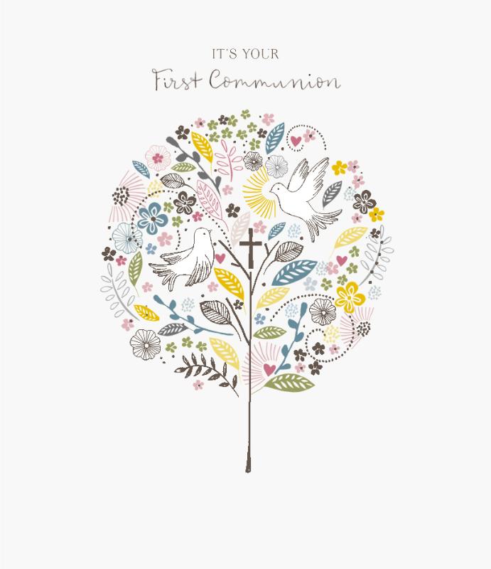 Celebrate their First Holy Communion with this pretty floral tree card, finished with silver metallic foil detailing.