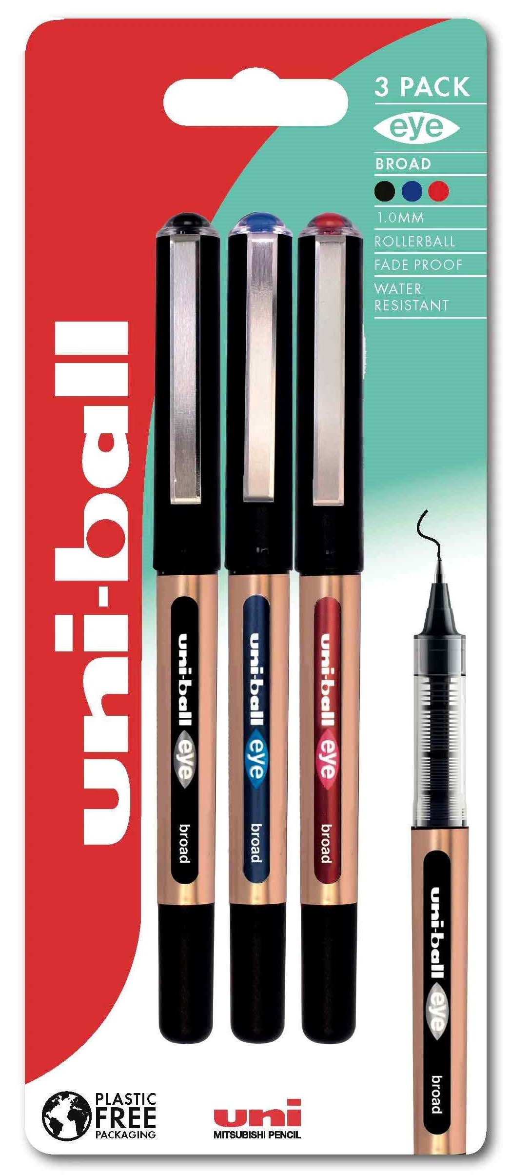 Be bold, write broad. The new eye broad has everything you’d expect from your uni-ball Eye pen – reliability, smooth flowing ink and a comfortable grip – but with a robust 1.0mm rollerball for expressive, broad handwriting.