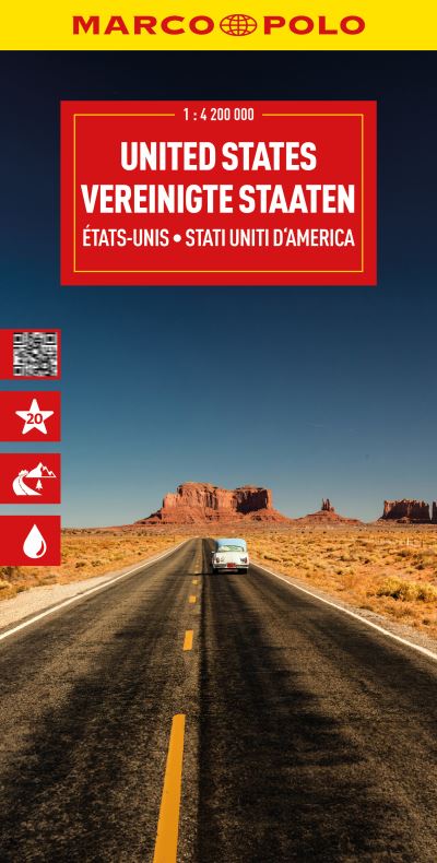 - Let the Marco Polo USA Road Map guide you around this stunning country. Plan your great American road trip from New York to LA and everywhere in between with this highly durable overview map of the whole of the United States. It folds away easily and is always on standby to help when you're stuck. Perfect touring map**xA0;- the scale is 1 : 4 200 000 ideal to help you plan your trip and to tour the major highways by car or RV Easy to use**xA0;- the superbly clear mapping in strong colours and easy to read text will help you navigate the region like a local Durable, tear-resistant map - designed to withstand the rigors of the road, the map is printed on tear-resistant, water repellent and writeable paper Highlights included - major sights and key points of interest are marked on the map by numbered stars. Further information about these key sights can be downloaded via a QR code where you'll find a brief description to help you pick the best places to see en-route Dream routes - inspirational routes with beautiful scenery are included on the maps to guide you on your next adventure Extensive index**xA0;- the thorough index, also included on the QR code, is fully cross-referenced to the map to help you pinpoint your destination quickly For the big trips and the little detours, trust Marco Polo's clear mapping and thorough index to guide you around USA.
