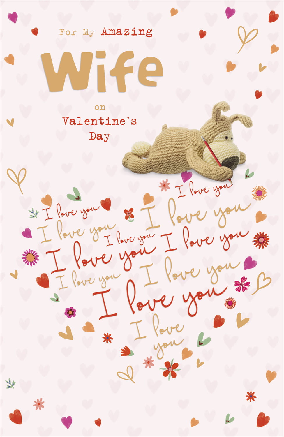 - Tell your wife just how much you love her with this cute Boofle Valentine's Day card. Featuring the adorable dog writing a heartfelt message, it's printed on premium quality board and finished with gold foil.