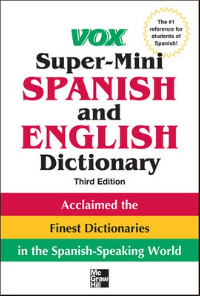 - The bestselling Spanish-English dictionary perfect for home, school, and workThe Vox Super-Mini Spanish and English Dictionary has helped Spanish-language learners read, write, and understand this popular language more successfully than any other portable dictionary on the market. This new edition of this bestselling Vox title has been expanded with 32 additional pages and has been revised and updated from front to back. Reset to provide maximum legibility and redesigned for a clearer and more contemporary layout, this handy A-to-Z reference contains all the essential Spanish words required for quick communication and comprehension.Inside you'll find:15,000 headwords and more than 24,500 translationsClearer typography for improved readabilityUpdated coverage of contemporary Spanish language and life