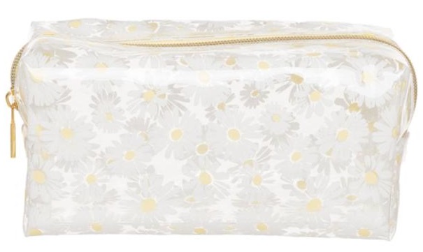 This Clear Cube Daisy Pencil Case with its floral design and clear background gives it a lacey chic illusion. The pencil case has a spacious inside which will hold your stationery. Gold Zip closure.