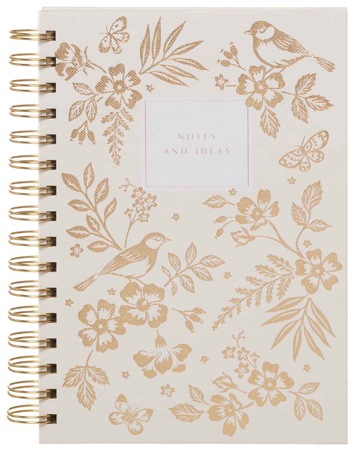 - Add a touch of sophistication to your stationery with the WHSmith Midnight Garden A5 Wiro Notebook. Featuring a chic cream and gold colour scheme and elegant floral design, this notebook is perfect for jotting down notes, ideas, or to-do lists. The sturdy wiro binding allows for easy page turning and a flat writing surface, making it ideal for both everyday use and special projects.