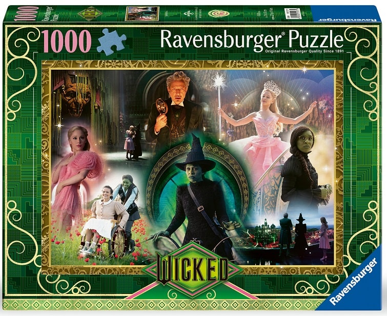 Delve into the enchanting world of Oz with this captivating 1000-piece jigsaw puzzle inspired by the hit Broadway musical ""Wicked."" Join Elphaba, Glinda, and the colorful cast of characters as they navigate the complexities of friendship, love, and destiny. With its 1000-piece challenge, this puzzle offers hours of entertainment and nostalgia for fans of all ages. This intricately crafted puzzle captures the heartwarming spirit of Michael Bond's beloved character, inviting puzzlers to piece together iconic scenes from Paddington's adventures. Our 1000 piece jigsaws are crafted with premium quality materials and measure 70 x 50cm when complete. Great for Adults and ideal puzzles for Children 12 years old and up. Fully complies with all necessary UK and EU testing standards.