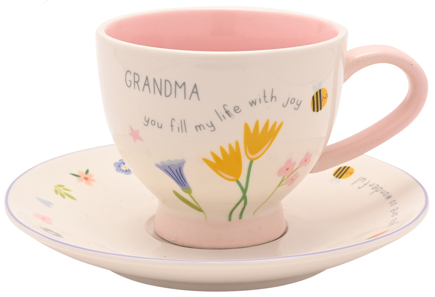 The Love Life Cup & Saucer - Grandma is a colourful set that makes every tea or coffee break feel special.