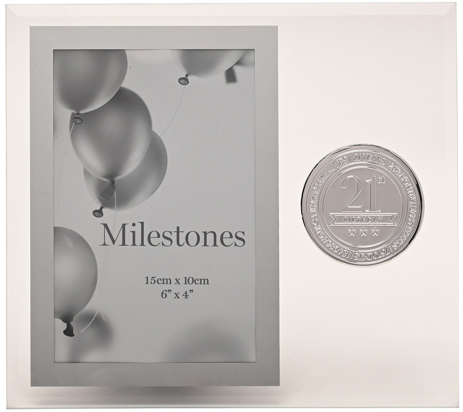 WIDDOP Milestones 21th Birthday 4" x 6" Glass Photo Frame with Metal Badge