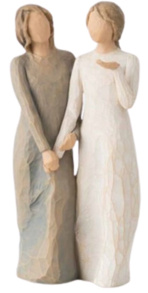The figure includes a gift tag with sentiment 'Walk with me. And along the way, we'll share... everything'. "A sister can save your life. A safety net. You never laugh harder than when you're laughing with your sisters... or very close dear friends. You share the same history; the inside jokes that no one else would understand in the same way. A sister knows your faults and somehow puts up with them, and loves you in spite of them. I have two sisters - one nearby and one farther away. When I'm with either one, or both, the walks we take and the talks we have are like one long ongoing conversation... we cover all subjects about anything and everything. By my side, my sisters are with me, in the present moment. This piece is about the rich and sustaining, comfortable constancy of lifelong friends." - Susan Lordi. A gift to celebrate supportive friendships amongst women - best friends, sisters and co-workers, neighbours. Height: 20.0cmThe figure includes a gift tag with sentiment 'Walk with me. And along the way, we'll share... everything'. "A sister can save your life. A safety net. You never laugh harder than when you're laughing with your sisters... or very close dear friends. You share the same history; the inside jokes that no one else would understand in the same way. A sister knows your faults and somehow puts up with them, and loves you in spite of them. I have two sisters - one nearby and one farther away. When I'm with either one, or both, the walks we take and the talks we have are like one long ongoing conversation... we cover all subjects about anything and everything. By my side, my sisters are with me, in the present moment. This piece is about the rich and sustaining, comfortable constancy of lifelong friends." - Susan Lordi. A gift to celebrate supportive friendships amongst women - best friends, sisters and co-workers, neighbours.