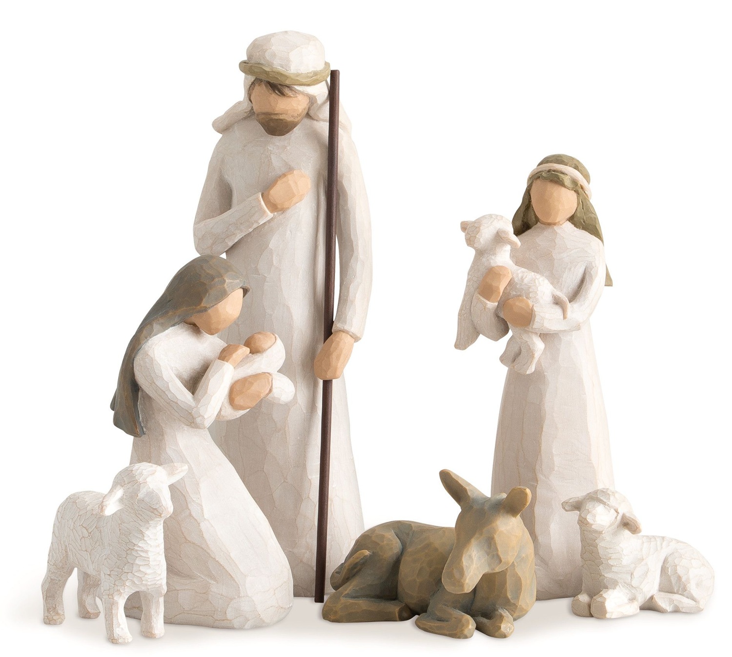 - As enduring as the story it portrays, the six piece Nativity is as loved today as when it was introduced in 2000. Its simplicity and form has made it a timeless classic. 23cm high supplied in a branded gift box. Willow Tree Nativity Set By Susan Lordi Six figures including Mary Joseph shepherdess 2 lambs and donkey Carved from wood effect Gift Box Height 23 cm Product Dimensions 5.08 x 7.62 x 24.13 cm; 1.1 kg •Finish types: Painted •Is assembly required: No •Number of pieces: 6 •Batteries required: No •Included components: 6 Piece Nativity Set •Item weight: 1.1 Kilograms