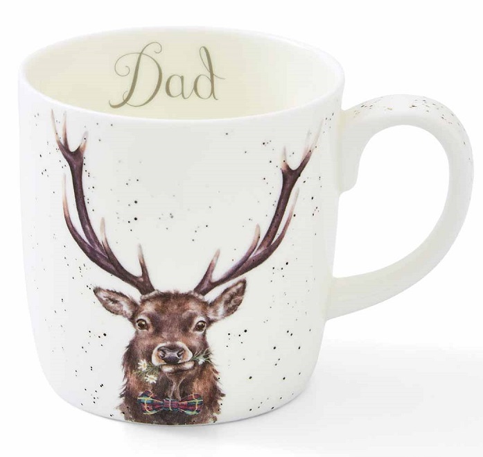 Show your appreciation to a special Dad with this charming mug featuring the handsome stag design along with the word 'Dad' printed on the inner rim. A larger size mug for those who love their hot drinks, this mug is also microwave and dishwasher safe. Packaged in a lovely green gift box. Capacity: 0.40L/14fl.oz. Original design painted in watercolour. Made from fine bone china. Dishwasher and microwave safe.