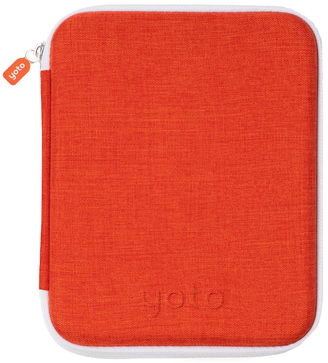 - This soft-case folder holds up to 64 Yoto Cards - that’s a lot of listening! It has angled pockets to make storing cards easy for small hands, and a simple zipper to open and close. The card case comes with 8 plastic sheets, each holding up to 8 cards. Just pop open the ring binder to organise your card sheets as you like! Available in 3 colours: Fruit Punch, Think Pink and Blue Bird. size: 24.5 x 17.5 x 3.5 cm