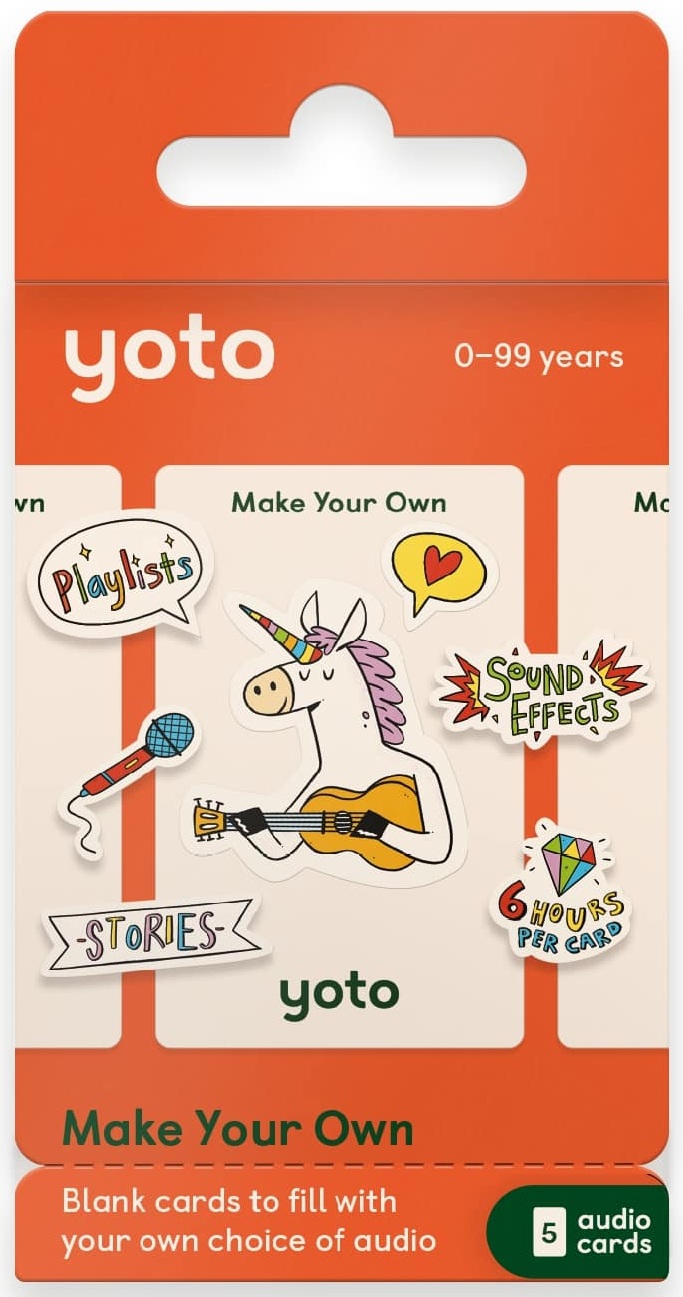 - Get grandparents to record bedtime stories, make a playlist from music files on your computer, or listen to your favourite radio station. You can also link Make Your Own cards to any content in your Yoto library - useful for replacing lost cards. Make Your Own cards are can be edited as many times as you like! Just use the Yoto app or Create page to change or update the content on each card.
