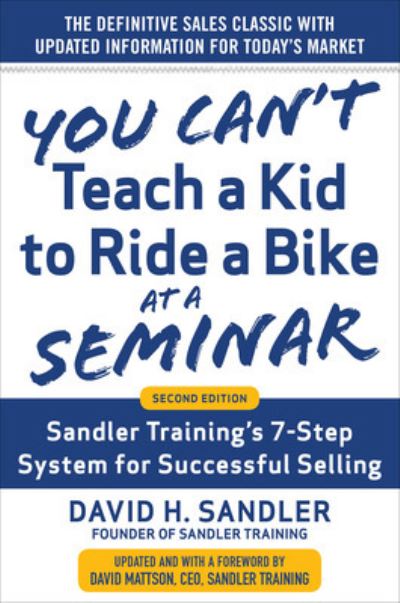 - The timeless guide to sales success has been revised to help you supercharge personal and team performance in a new economy "People make buying decisions emotionally and justify them logically."That shrewd insight from the first edition of this bestselling book has become a no-brainer among sales professionals. Now, the new edition of classic work that has helped millions of sales professionals take their career to new levels offers critical new insights, information, and tools for success in today's economy. You Can't Teach a Kid to Ride a Bike at a Seminar, Second Edition retains David Sandler's classic, battle-tested advice on driving personal and organizational success by breaking the rules of conventional selling. And now Sandler Training's CEO, David Mattson, has revisited it to provide additional skills designed for today's highly competitive and more complex sales landscape. With this powerful guide, you'll learn how to: Take the lead in the "buyer/seller dance" Get the prospect to do most of the talkingHave a process for answering questions from prospectsKnow when a prospect is shopping you . . . and what to do about it Move the relationship forward without becoming an unpaid consultant Master the seven steps of the "Sandler Submarine" Use LinkedIn as a prospecting and qualifying tool Establish an "up-front contract," or call roadmap, before your face-to-face meeting Use online research to turn "cold calls" into warm callsSales professionals and teams that follow these principles-and others outlined in the book-will transform themselves from mediocre performers into selling superstars.This new edition of You Can't Teach a Kid to Ride a Bike at a Seminar is a potent mixture of Sandler's timeless techniques and best practices from the most effective sales operation today.