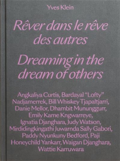 - Published on the occasion of the homonymous exhibition held at the Opale Foundation (in Lens, Switzerland), the book Rêver dans le rêve des autres (Dreaming in the dream of others) presents the work of Yves Klein alongside with works by twelve Aboriginal artists (Angkaliya Curtis, Bardayal "Lofty" Nadjamerrek, Bill Whiskey Tjapaltjarri, Danie Mellor, Dhambit Munungurr, Emily Kame Kngwarreye, Ignatia Djanghara, Paddy Bedford, Waigan Djanghara, Wattie Karruwara, Judy Watson, and Paji Honeychild Yankarr), showing how the link between the French artist and the world of the Australian Aborigines is anything but arbitrary. Klein was very interested in the non-Western: works from his youth have been discovered in his archives that were later identified as copies of Aboriginal motifs, and his writings confirm that he was familiar with the cave paintings of north-western Australia. In the '50s, Aboriginal art, which was little known, was seen not as the expression of a different spirit, but rather as the survival of a vanished spirit, in short, that of the Neolithic: Yves Klein, like his parents, was fascinated by prehistory.